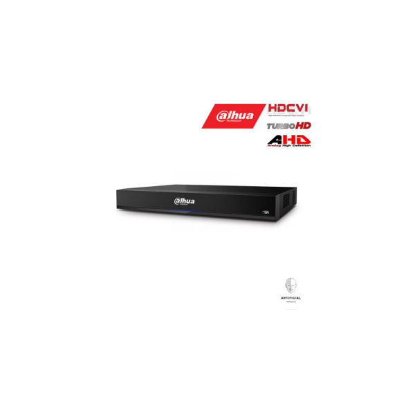 Features: • H.265+/H.265 dual-stream video compression • Supports HDCVI/AHD/TVI/CVBS/IP video inputs • Supports 64 channels of IPC access, each channel up to 12MP input; Max 256Mbps incoming bandwidth • HDMI1 4K@60fps output • Up to 8 channel perimeter protection • Up to 4 channel video stream face recognition • Up to 24 face pictures /sec processing • Up to 20 face databases with 100,000 face images in total Technical Specifications: System • Main Processor Embedded Processor • Operating System Embedded LINUX Perimeter Protection • Performance: 8 channel, 10 IVS rules for each channel • Object classification: Human/Vehicle secondary recognition for tripwire and intrusion • AI Search: Search by target classification (Human, Vehicle) Face Recognition • Performance: Max 24 face pictures /sec processing (modeling and comparing), 4 channel video stream face recognition • Stranger Mode: Detect strangers' faces(not in device's face database).Similarity threshold can be set manually. • AI Search Up to 8 target face images search at same time, similarity threshold can be set for each target face image. • Database Management: Up to 20 face databases with 100,000 face images in total. Name, gender, birthday, nationality, address, ID information can be added to each face picture. • Database Application: Each database can be applied to video channels independently. • Trigger Events Buzzer, Voice Prompts, Email, Snapshot, Recording, Alarm Out, PTZ Activation, etc. Metadata • Face Gender, age, glasses, beard, mask. • AI Search Support search target video by metadata. Video and Audio • Analog Camera Input 8 Channel, BNC • HDCVI Camera 4K, 6MP, 5MP, 4MP, 1080P@25/30fps, 720P@50/60fps,720P@25/30fps • AHD Camera 5MP, 4MP, 3MP, 1080P@25/30, 720P@25/30fps • TVI Camera 5MP, 4MP, 3MP, 1080P@25/30, 720P@25/30fps • CVBS Camera PAL/NTSC • IP Camera Input 64 Channel, each channel up to 12MP • Audio In/Out 4/1, RCA • Two-way Talk Mic in & reuse Audio out for Mic out, RCA Recording • Compression H.265+/H.265/H.264+/H.264 • Resolution 4K, 6MP, 5MP, 4MP, 3MP, 1080P, 720P, 960H, D1, CIF Record Rate • Main stream: 4K(1~15fps); 6MP/5MP(1~20fps);4MP/3MP/1080P/720P/960H/D1/CIF (1~25/30fps) • Sub steram:960H(1~15fps);D1/CIF(1~25/30fps) • Bit Rate 32Kbps ~ 8192Kbps Per Channel • Record Mode Manual, Schedule (General, Continuous), MD (Video detection:Motion Detection, Video Loss, Tampering), Alarm, Stop • Record Interval 1 ~ 60 min (default: 60 min), Pre-record: 1 ~ 30 sec, Postrecord: 10 ~ 300 sec Display • Interface 2 HDMI, 1 VGA Resolution • HDMI 1:3840×2160, 2560×1440, 1920×1080, 1280×1024,1280×720 • HDMI2/VGA: 1920×1080, 1280×1024, 1280×720 • Multi-screen Display When IP extension mode not enabled: 1/4/8/9 • When IP extension mode enabled: 1/4/8/9/16/25/36 • OSD Camera title, Time, Video loss, Camera lock, Motion detection, Recording Network • Interface 2 RJ-45 Ports (1000M) • Network Function: HTTP, HTTPS, TCP/IP, IPv4/IPv6, Wi-Fi, 3G/4G, SNMP,UPnP, RTSP, UDP, SMTP, NTP, DHCP, DNS, IP Filter,PPPoE,DDNS, FTP, Alarm Server, P2P,IP Search (Supports Dahua IP camera, DVR, NVS, etc.) • Max. User Access 128 users • Smart Phone iPhone, iPad, Android • Interoperability ONVIF 16.12, CGI Conformant Video Detection and Alarm • Trigger Events Recording, PTZ, Tour, Video Push, Email, FTP, Snapshot, Buzzer and Screen Tips • Video Detection Motion Detection, MD Zones: 396 (22 × 18), Video Loss,Tampering and Diagnosis • Alarm input 16 • Relay Output 3 Playback and Backup • Playback 1/4/9/16 • Search Mode Time /Date, Alarm, MD and Exact Search (accurate to second) Playback Function • Play, Pause, Stop, Rewind, Fast play, Slow Play, Next File, Previous File, Next Camera, Previous Camera, Full Screen, Repeat, Shuffle, Backup Selection, Digital Zoom • Backup Mode USB Device/Network Storage • Internal HDD 2 SATA Ports, up to 10TB capacity for each disk • eSATA N/A Auxiliary Interface • USB 3 USB Ports (1 USB 2.0 , 2 USB 3.0) • RS232 1 port, For PC communication & Keyboard • RS485 1 Port, for PTZ Control Electrical • Power Supply DC12V/5A • Power Consumption <20W (Without HDD) Construction • Dimensions 1U, 375mm×328mm×50mm (14.8" x 12.9" x 2.0") • Net Weight 2.35kg (5.2lb) (without HDD) • Gross Weight 3.2kg (7.05lb) • Installation Desktop installation Environmental • Operating Conditions -10°C ~ +55°C (+14°F ~ +131°F), 0~ 90% RH • Storage Conditions -20°C ~ +70°C (-4°F ~ +158°F) , 0~ 90% RH