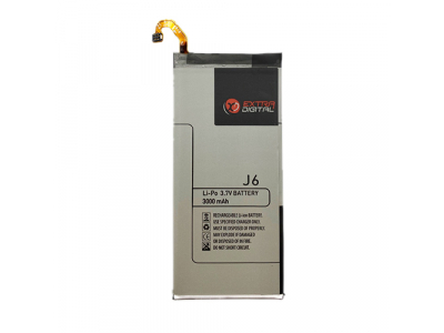 Load faster - use longer - feel safer! High quality Extra Digital lithium ion batteries with shorter charging time and longer battery life. Battery replaces the original: Samsung Galaxy J6 (2018) Technical specification:Capacity: 3000 mAhType: Li-polymerVoltage: 3.7 VNote: The list of compatible batteries and phones may be incomplete.Warranty: 12 months.Manufacturer: Extra Digital, EU