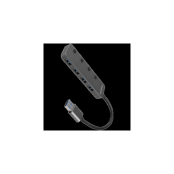 AXAGON HUE-MSA 4x USB3.2 Gen 1 SWITCH hub, metal, micro USB power IN, 20cm USB-A cable