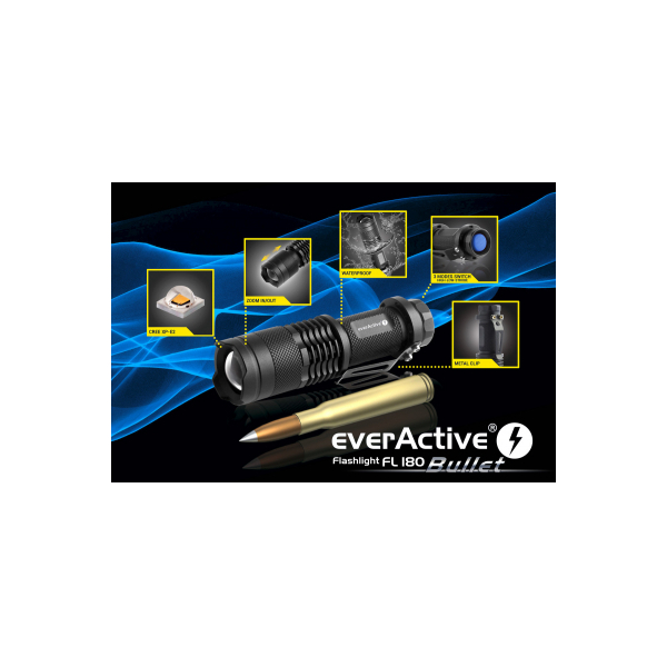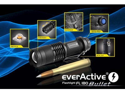 everActive Lukturis everActive FL-180 1xAA baterija vai 1x14500 Li-ion CREE XP-E2 100-200lum