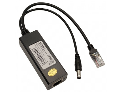 Features: 1x RJ45 female input port + 1x RJ45 male output port + 1x DC (5.5x2.1mm) male output port.Supports IEEE802.3af, compatible with Mid-Span(4,5+; 7, 8-) and End-Span(1,2+; 3,6-).Voltage input range: 44-57V, power output: 25.5W, with over 82% efficiency.Support isolation function.Default voltage output: 12V.High voltage isolation: 1500V (Input stage to output stage).Protections: short circuit / over voltage / over-temperature.