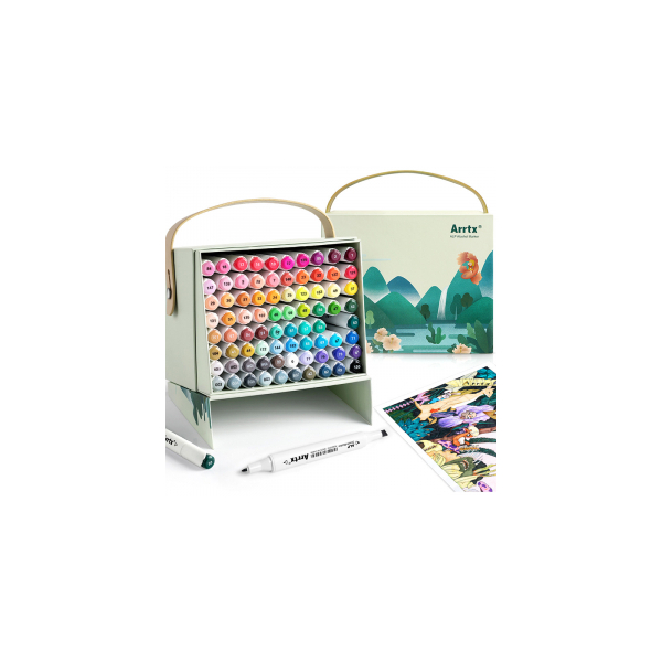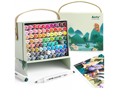 Double-sided Marker Pens ARRTX Alp can meet all your needs, including render, sketch, illustrate, design, and more in remarkable detail. A wide range of colors helps you achieve better tonal gradual. Designed package box lets each marker pen to have a place to put in well. When box is opened the movable side can be used as stand. The belt on the top of the box let carry it easily. The empty box can be used for storage.