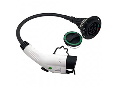 Electric car charging cable adapter Type 1 (Female) - Type 2 (Male), with 0.3m cable.