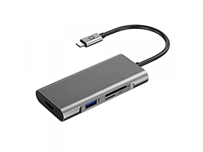 Adapter USB C plug to 3 USB 3.0 ports, Type C, HDMI, has SD and TF card slots.