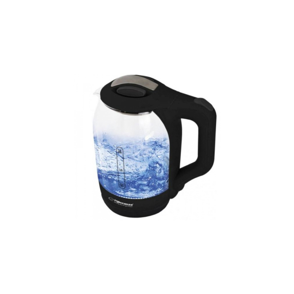 Stikla, bezvadu elektriskā tējkanna ar LED fona apgaismojumu ūdens vārīšanās laikā.Izgatavots no augstas kvalitātes karstumizturīga stikla ar iebūvētu sildelementu.