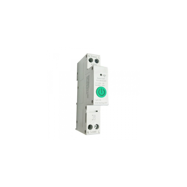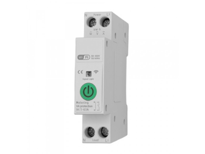 TUYA Smart 1-pole switch for electrical devices; supports remote control via Wi-Fi 2.4GHz; mounting on DIN rail, for various household appliances. With metering.