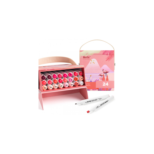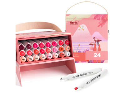 High-brightness and high-quality professional markers-felt-tip pens ARRTX Alp, designed for drawing, illustration, sketching, highlighting, rendering. The set includes 24 shades of red. This set of markers comes with a box with a stylish design. The box is designed so that each marker-marker has a separate compartment, and when the box is opened, its lid can be used as a stand. The built-in strap at the top of the box makes it easy to carry the marker in a convenient place for you. An empty box can be used as a storage box.