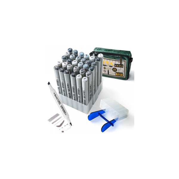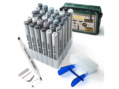 Professional art markers: All Arrtx OROS series markers use durable fiber tips, highly pigmented high-quality alcohol-based inks. We aim to provide quality markers for artists, designers, artists, craftsmen, art students, and more. Markers ARRTX Oros for drawing, illustration, sketching, developing, rendering. The set includes 32 shades of gray. This set of markers comes with a woven bag, and the markers are placed in a paste holder. The holder is designed so that each marker marker has a separate compartment.