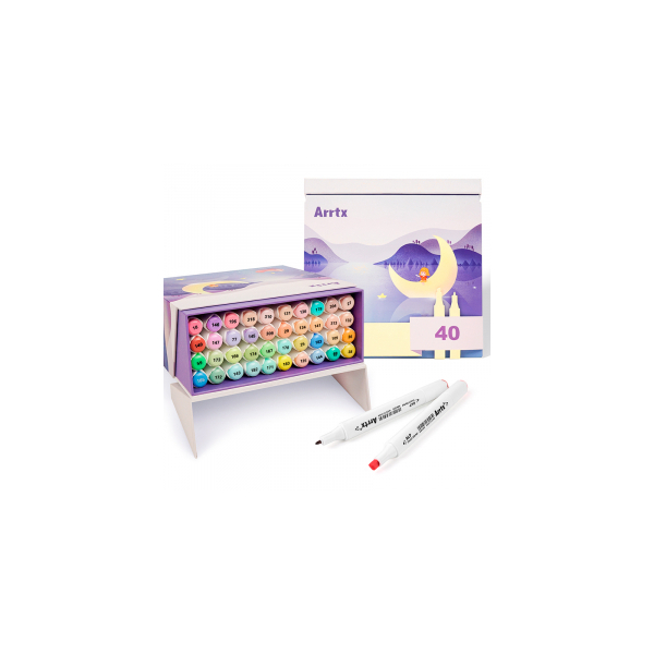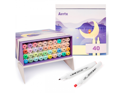High-brightness and high-quality professional markers-felt-tip pens ARRTX Alp, designed for drawing, illustration, sketching, highlighting, rendering. The set includes 40 pastel shades. This set of markers comes with a box with a stylish design. The box is designed so that each marker has a separate compartment, and when the box is opened, its lid can be used as a stand. An empty box can be used as a storage box.