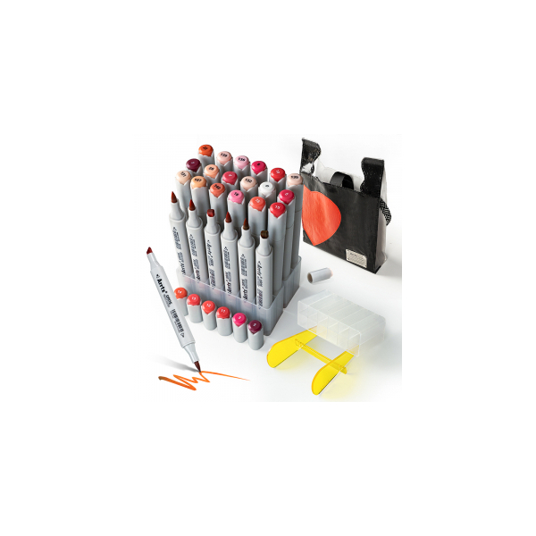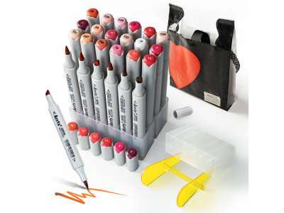 Professional art markers: All Arrtx OROS series markers use durable fiber tips, highly pigmented high-quality alcohol-based inks. We aim to provide quality markers for artists, designers, artists, craftsmen, art students, and more. Markers ARRTX Oros for drawing, illustration, sketching, developing, rendering. The set includes 24 shades of red. This set of markers comes with a woven bag, and the markers are placed in a paste holder. The holder is designed so that each pen has a separate compartment.