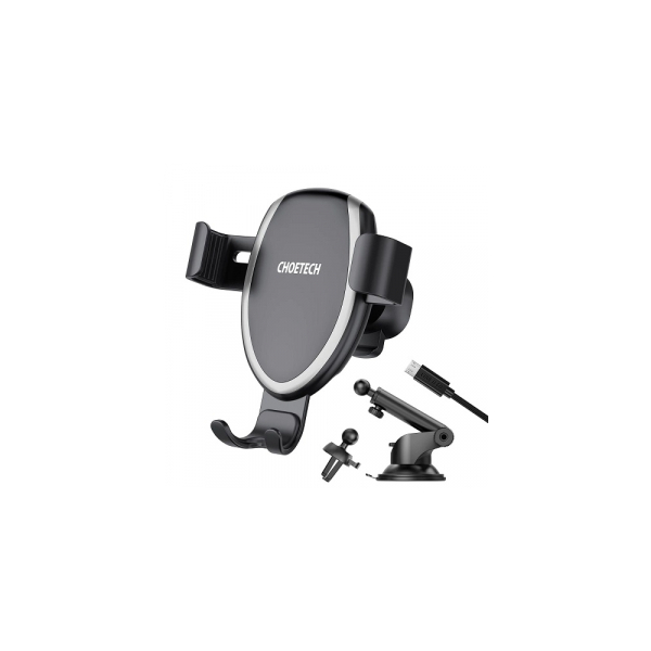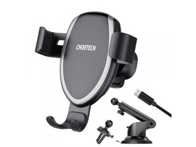 Car phone holder with wireless charging function, 10W, with two mounting adapters (dashboard / windshield / air vent mount).