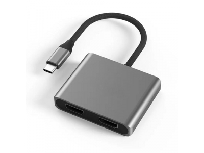 Specifications:Type: adapter.Input interface: USB Type-C plug (M).Output interface: 2x HDMI (F) sockets.USB standard: USB 3.0.Transfer rate: up to 5Gbps.Resolution: 4K, 60Hz.Supported systems: Windows, Mac OS, iOS.Cable length: 150mm.Color: gray.Body material: aluminum.