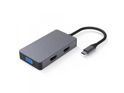 Adapter USB Type-C to 2x HDMI, 1x VGA, 1x USB Type-A, 1x USB Type-C PD60WFeatures: The 5-in-1 adapter with 2 HDMI and 1 VGA outputs, especially suitable for video transmission to several monitors or projectors.USB 3.0 Type-A and USB Type-C connectors allow you to connect a hard disk or flash drive, etc.Supports fast charging PD 20V/3A, 60W.The USB 3.0 port supports 5Gb/s data transfer rates.The adapter is compatible with Windows and Mac OS operating systems.Aluminum body. Good heat dissipation.