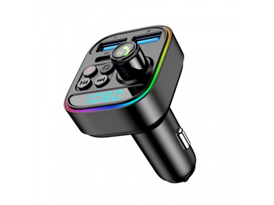 FM transmitter with fast charging function. This in-car wireless FM transmitter is designed to transmit MP3/WMA audio files from a USB flash, MP3 player or smart device to the car radio using FM radio waves.