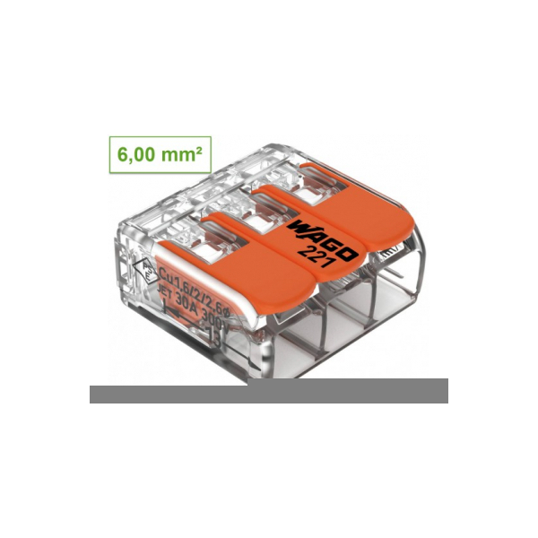WAGO 3-kontaktu spaile 221-613 1gb. Fine-stranded conductor : 0.14 … 6 mm² / 24 … 12 AWG