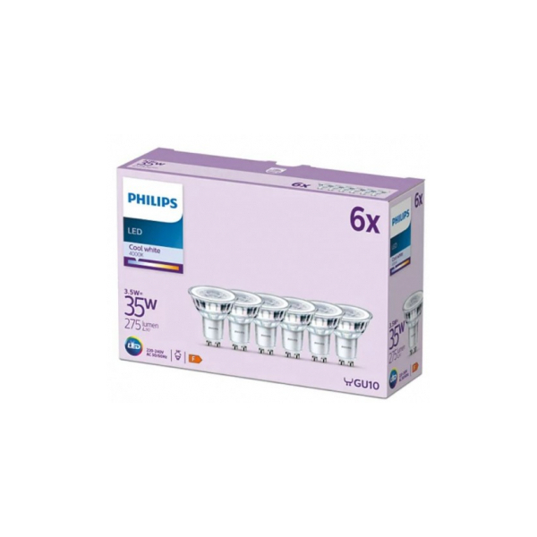 PHILIPS LEDClassic 3.5W (35W) 275lm GU10 4000K 36D nav dimmējama 6 gab.
