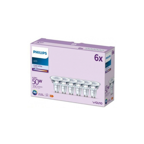 PHILIPS LEDClassic 4.6W (50W) 390lm GU10 4000K 36D nav dimmējama 6 gab.
