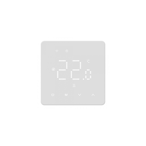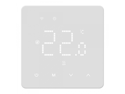 Wireless thermostat for electric heating, 16A, 230VAC, Wi-Fi, Tuya, Smart Life, with internal and external air temperature sensors, whiteFeatures:Remote control thermostat for electric heating system, programmable. Designed to automatically control the room temperature when switching electric heating on and off. Various control modes are supported.The thermostat controls the operation of the heating equipment by sensing the comparison between the ambient temperature with the set temperature.Manual and automatic control functions are supported, as well as various automatic programming modes for weekdays and weekends.Programmed settings and heating status memory are kept even during power loss.The thermostat supports voice control with Amazon Alexa or Google Assistant connected to your home system.With the Tuya Smart/ Smart Life mobile app (iOS and Android), you can adjust the temperature even when you are not at home.The termostat has child protection (screen locking), also antifreeze function.The device has an elegant design with an adjustable brightness LCD touch screen and is easy to use.