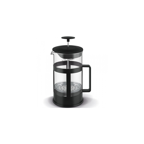 Tējkannā ir nerūsējošā presfiltrs tējām un maltai kafijai.