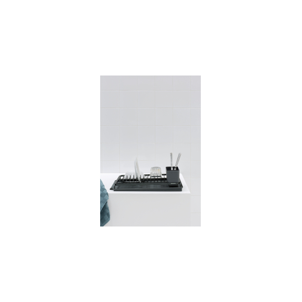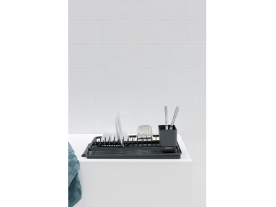 Šis Brabantia SinkSide trauku žāvēšanas komplekts ir paredzēts slapju un pilošu trauku žāvēšanai un uzglabāšanai. Tajā var salikt līdz 13 šķīvjiem, kā arī bļodām, galda piederumiem un glāzēm. Tam ir noņemams galda piederumu grozs un slīpa notekpaplāte, tēdēļ pilieni, kuri notek no traukiem ieplūst tieši izlietnē