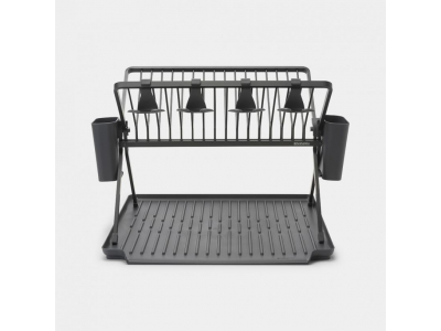 Atstājiet traukus žāvēšanai uz šī lielā Brabantia SinkSide salokāmā trauku žāvēšanas plaukta ar pilienu paplāti. Tajā var ietilpt līdz 17 šķīvjiem, un tajā ir vieta 4 vīna glāzēm. Divi grozi galda piederumu žāvēšanai ir noņemami, tāpēc plauktu ir viegli salikt un sakārtot. Speciālā notekpaplāte neļauj jūsu galda virsmai samirkt un mitrums noplūst tieši izlietnē