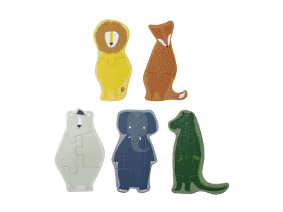 Atrodi un saliec visus vajadzīgos puzles gabalus, lai izveidotu 5 dažādas dzīvnieku formas puzles.