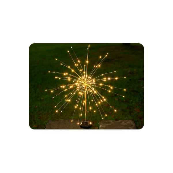 Saules LED enerģijas dekors imitē uguņošanu. Pateicoties tehnoloģijai un iebūvētajām gaismas diodēm, lampa spīd ar siltu gaismu, radot acij tīkamu eksplozijas uguņošanas efektu.