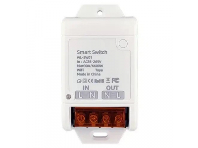 Smart switch-relay for electrical appliances, supporting remote control via Wi-Fi with Tuya Smart or Smart Life apps. Does not have an electricity consumption accounting function.