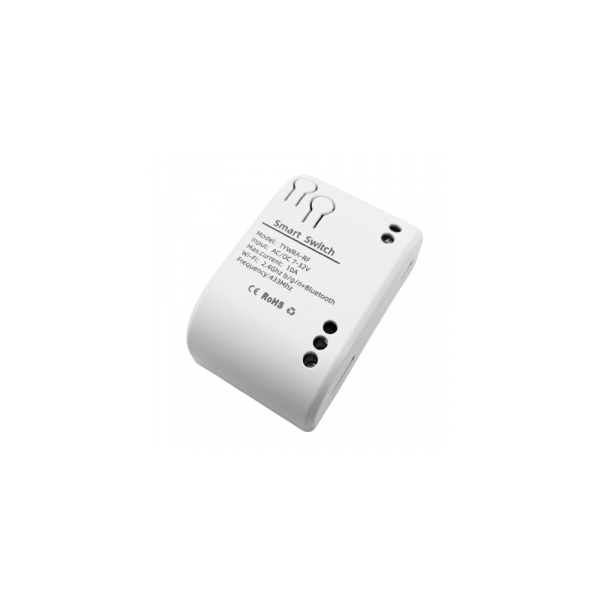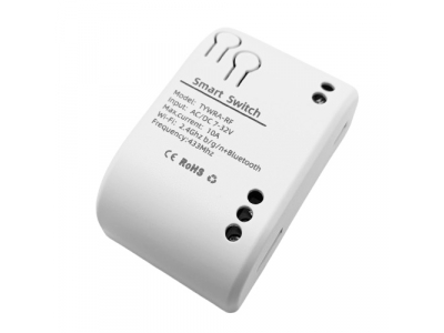 Smart switch-relay for electrical appliances, supporting remote control via Wi-Fi with Tuya Smart or Smart Life apps and RF remote control. Does not have an electricity consumption accounting function.