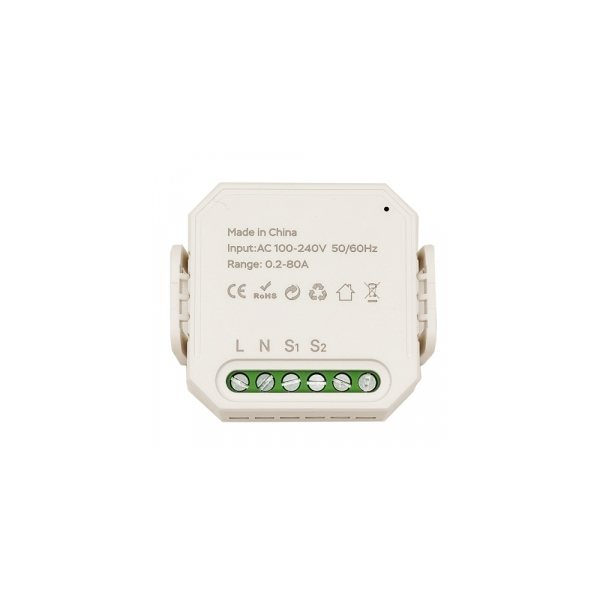 Smart Energy Meter, 1P+N, 80A, Wi-Fi, Tuya, with CT Current SensorFeatures: The smart energy meter is an advanced, compact device designed for efficient and accurate energy consumption monitoring. It is intended for use in a single-phase system with a neutral wire (1P+N). It has a single measurement channel, allowing it to monitor only one circuit (e.g., household sockets, lighting, or low-power loads).It measures voltage, current, power, and energy consumption.Current measurement up to 80A ensures precise monitoring of consumed energy.It uses a 10mm diameter CT (Current Transformer) sensor module (Split-core CT), allowing for quick and convenient installation without interrupting the existing power supply.Note: Only one wire (either L or N) should pass through the CT module; passing both will result in a zero reading.Convenient device connectivity via the Tuya smart home app. The app provides real-time energy consumption history and data analysis.Operates over 2.4GHz Wi-Fi. The Tuya app supports Android and iOS smart devices.Voice control compatible with Amazon Alexa and Google Assistant.Includes LED status indicator and pairing button.Small, lightweight, and compact. Flexible installation in distribution panels. Comes with a bracket for mounting on a DIN 35mm rail or wall.Easily integrates into smart systems.Ideal for residential and office applications.