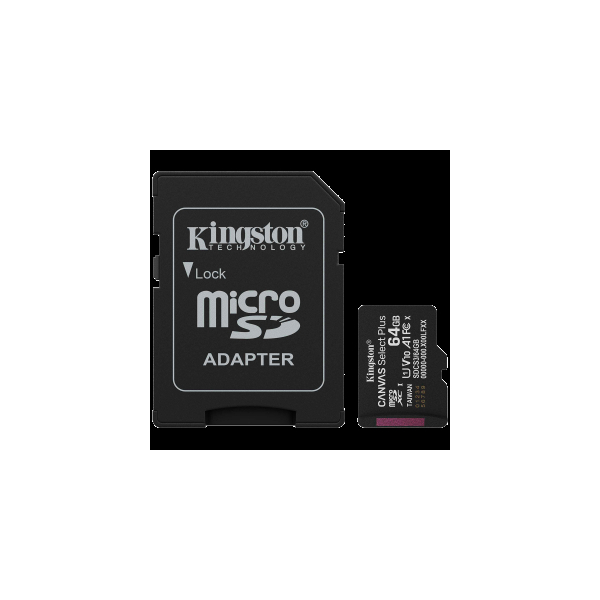 Kingston 64GB microSDXC Canvas Select Plus Gen3 100MB/s A1 Card + Adapter