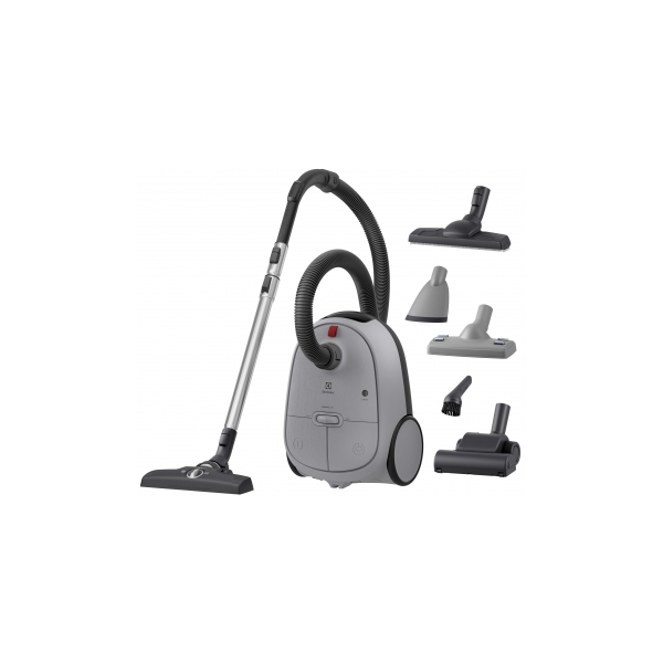 Ar s-bag® putekļu maisiņu, 12m darb. rādiuss, telesk. caurule, mazgājams Hygiene filtrs, 73dB, pelēkā krāsā, 7.49kg