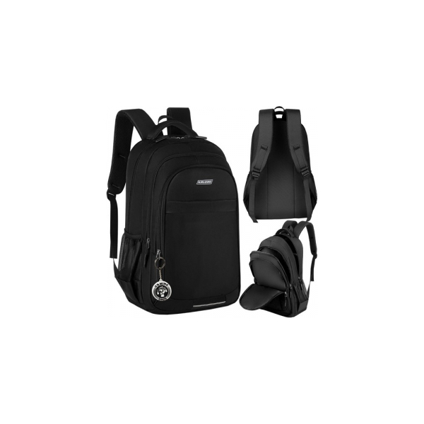 Izgatavota no izturīga OXFORD 600D materiāla, kam raksturīga augsta izturība pret mehāniskiem bojājumiem un laikapstākļiem. Mugursomas iekšpuse ir apstrādāta ar oderi, kas arī izgatavota no tā paša materiāla, lai nodrošinātu papildu aizsardzību grāmatām un piezīmju grāmatiņām pret mitrumu. Turklāt starp ārējo slāni un oderi, visā mugursomas aizmugures virsmā, ir EPE putu pildījums, kas ne tikai palielina lietošanas komfortu, bet arī papildus aizsargā saturu no triecieniem un triecieniem. Mugursoma ir aprīkota ar divām sānu kabatām, kas izgatavotas no sieta ar elastīgu lenti, kuras ir ideāli piemērotas ūdens pudeles vai citu mazu priekšmetu pārnēsāšanai. Mugursomai ir ļoti liela ietilpība – līdz 45 l.