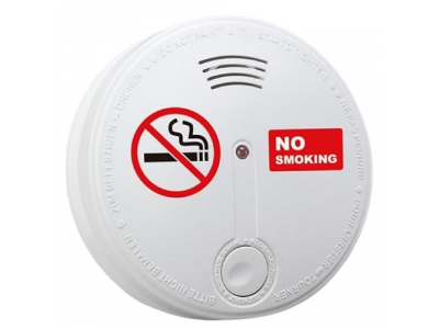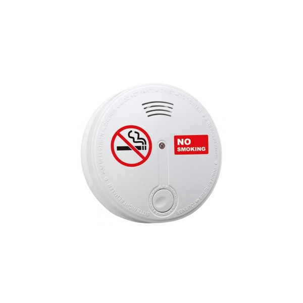 Smart wireless smoke detector with a photoelectric sensor that detects cigarette smoke early from any direction. It triggers an optical and audible alarm and sends warning messages via the TUYA app over a Wi-Fi network.