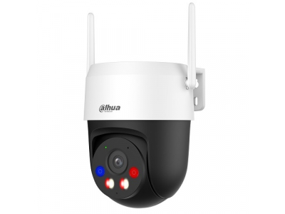 5MP Outdoor Fixed-focal Wi-Fi Pan & Tilt Network Camera. The Active Defense series of small PT cameras raises the bar on performance. After detecting an intrusion, it triggers sound and light alarms, and then instantly relays vital information on the intrusion to the mobile client, keeping you informed no matter where you are. It supports two-way talk, allowing you to communicate with people in front of the camera in real time. Additionally, it includes smart dual illuminators that not only reduce light pollution, but also intelligently turn on when they are triggered by an event to assist the camera with capturing clear, full-color videos. Image Sensor: 1/2.7" CMOS. Max. Resolution: 2880 (H) x 1620 (V). Min. Illumination: 0.007 lux@F1.6 (Color, 30 IRE); 0.0007 lux@F1.6 (B/W, 30 IRE); 0 lux (Illuminator on). Illumination Distance: Up to 30 m (98.43 ft) (IR); Up to 30 m (98.43 ft) (Warm Light). Illuminator Number: 2 (Multi-core (IR + warm) light). Angle Adjustment: Pan: 0° to 345°; Tilt: 0° to 90°; Rotation: 0° to 345°. Max. Aperture: F1.6. Field of View: H: 78°; V: 42°; D: 92°. Human Detection: Yes. Vehicle Detection: Yes. Video Compression: H.265; H.264; H.264H; H.264B; MJPEG (Only supported by sub stream). Video Frame Rate: Main stream: 2880 × 1620@(1–25/30 fps); sub stream: 640 × 360@(1–25/30 fps). Resolution: 2880 (H) × 1620 (V). Video Bit Rate: H.264: 32 kbps–6144 kbps; H.265: 32 kbps–6144 kbps. Day/Night: Auto(ICR)/Color/B/W. WDR: DWDR. Motion Detection: OFF/ON (4 areas, rectangular). Image Rotation: 0°/180°. Built-in MIC: Yes. Built-in Speaker: Yes. Audio Compression: G.711a; G.711Mu; PCM. Network Port: RJ-45 (10/100 Base-T). Wi-Fi: IEEE 802.11a/b/g/n/ac/ax 2.4 G & 5 G. Storage: Micro SD card (up to 256 GB). Management Software: Smart PSS Lite; DSS; DMSS. Mobile Client: iOS; Android. Power Supply: 12 VDC. Power Consumption: Basic: 2 W; Max.: 14W (illuminator intensity + red and blue active deterrence + speaker on + PT rotation + Wi-Fi pulling stream + WDR). Operating Temperature: -30 °C to +55 °C (-22 °F to +122 °F). Operating Humidity: <95% (RH), non-condensing. Casing Material: Plastic. Product Dimensions: 125.4 mm × 110 mm × 140.3 mm (4.94" × 4.37" × 5.52") (L × W × H). Net Weight: 400 g (0.88 lb).