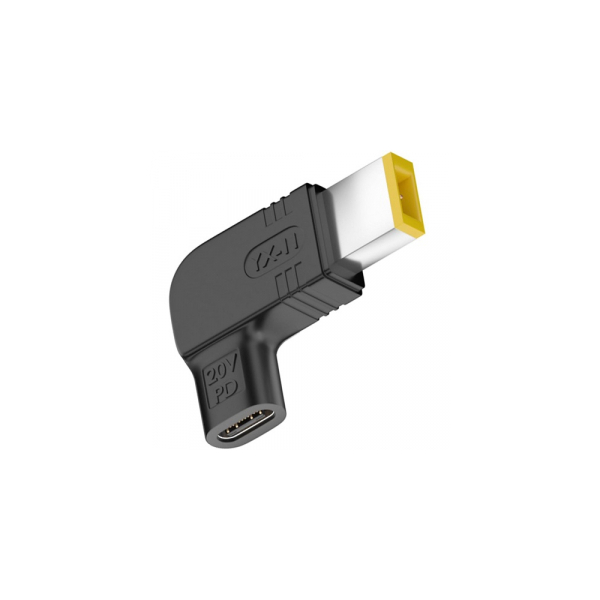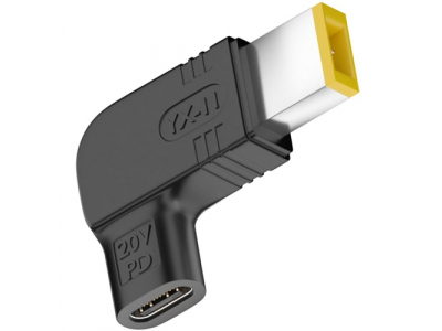 USB Type-C to DC Lenovo Rectangle Plug adapter Features: USB Type-C (F) to DC Lenovo Rectangle Plug (M) adapter is a power plug designed for Lenovo ThinkPad series laptops. Compatible with standard Lenovo Rectangle Plug DC ports with center pin. The adapter supports up to 100 W (20 V / 5 A) via USB Type-C PD (Power Delivery). Note: Actual power depends on the charger and cable used. Technical specifications: Connector 1: USB Type-C (F). Connector 2: Lenovo USB Rectangle Plug (M) with pin. Output voltage: 20 V. Max power: up to 100 W. Current: up to 5 A. Standard: USB Type-C Power Delivery (PD). Warranty: 24 months.