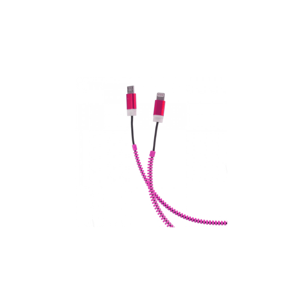 FOREVER 2in1 micro+Apple iPhone 5 zipper pink cable box