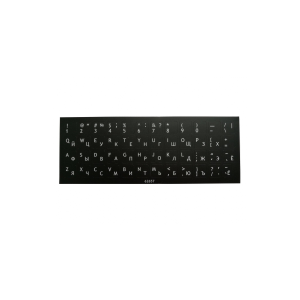 Uzlīmes klaviatūrai, krievu/angļu burti (balti/balti) 13x13mm, melna pamatne