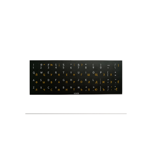 Uzlīmes klaviatūrai, krievu/angļu burti (dzelteni/balti) 13x13 mm, melna pamatne