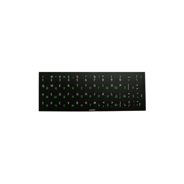 Uzlīmes klaviatūrai, krievu/angļu burti (zaļi/balti) 13x13 mm, melna pamatne