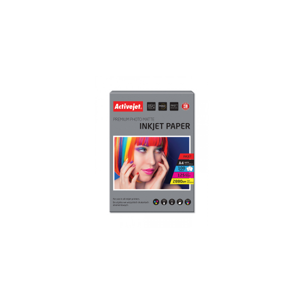Activejet AP4-125M100 matte photo paper for ink printers; A4; 100 pcs
