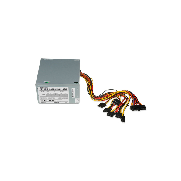 Power supply ATX 2.2 400W. A large number of security features, including: UVP (under-voltage) / OVP (overvoltage) / SCP (short circuit) / OPP (overload) / OCP (overcurrent) / OTP (thermal) and AFC (automatic control of the fan speed). It has detachable power connector (20 + 4) for connecting to the motherboard power 20-pin and 24-pin connector.