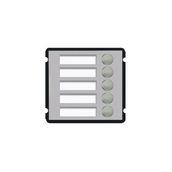 General• 5-button module VTO2000A-B5 • Material Stainless Steel• Power Supply by VTO2000A-C• Power Consumpton Standby ?0.1W, Work ?0.45W• Working Temperature -40°C~+60°C• Relatve Humidity 10%~90%RH• Dimensions 110mm×120mm×29.0mm• Weight 0.32Kg