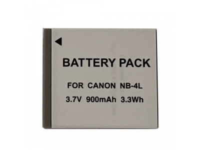 Canon, battery NB-4L, 3.7V, 900mAh, Li . Battery replaces the original Canon NB-4L Compatitible with: Canon: Digital IXUS 100 IS. Digital IXUS 110 IS. Digital IXUS 120 IS. Digital IXUS 30. Digital IXUS 40. Digital IXUS 50. Digital IXUS 55. Digital IXUS 60. Digital IXUS 65. Digital IXUS 70. Digital IXUS 75. Digital IXUS 80 IS. Digital IXUS i Zoom. Digital IXUS i7 Zoom. Digital IXUS WIRELESS. IXY 210 IS. IXY 210F. IXY 400F. IXY 410F. IXY 510 IS. IXY 600F. IXY 610F. IXY Digital 10. IXY Digital 20 IS. IXY DIGITAL 210 IS. IXY DIGITAL 220 IS. IXY Digital 40. IXY Digital 50. IXY DIGITAL 510 IS. IXY Digital 55. IXY Digital 60. IXY Digital 70. IXY Digital 80. IXY Digital 90. IXY Digital L3. IXY Digital L4. IXY Digital WIRELESS. IXUS 115 HS. IXUS 130. IXUS 220 HS. IXUS 230 HS. IXUS 255 HS. PowerShot ELPH 100 HS. PowerShot ELPH 300 HS. PowerShot ELPH 310 HS. PowerShot ELPH 330 HS. PowerShot SD1000. PowerShot SD1100 IS. PowerShot SD1400 IS. PowerShot SD200. PowerShot SD30. PowerShot SD300. PowerShot SD40. PowerShot SD400. PowerShot SD430. PowerShot SD430 WIRELESS. PowerShot SD450. PowerShot SD600. PowerShot SD630. PowerShot SD750. PowerShot SD780 IS. PowerShot SD940 IS. PowerShot SD960 IS. PowerShot TX1. Warranty 12 months. Manufacturer: Extra Digital, EU
