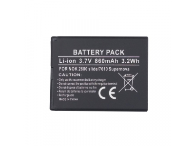 Nokia, battery BL-4S, 3,7V, 860 mAh, Li Battery replaces original NOKIA BL-4S. Compatitible with: Nokia: 2680 Slide 2680s 3600 Slide 3600s 3602s 3710 fold 6208c 7100 Supernova 7100s 7020 7610 Supernova 7610s 7612s X3-02 ________________________ Warranty: 12 months Manufacturer: Extra Digital, EU